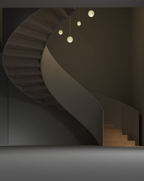 The project focused on developing a lighting for a spiral staircase in a private residence in Genk, Belgium. The lighting design aimed to enhance the form of the spiral staircase, emphasizing its fluid form. The design focuses on controlled illumination and shadows. Three distinct lighting options were created to explore variations for the space. Each proposal adds a visual drama to the space ensuring the staircase is the centerpiece.